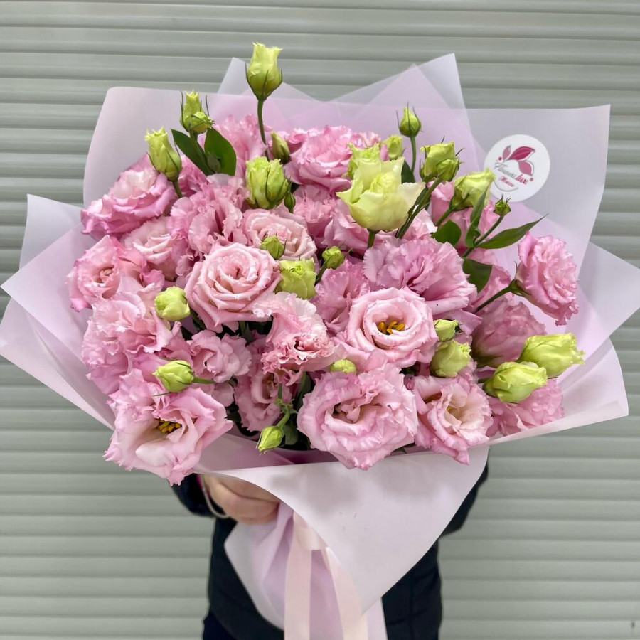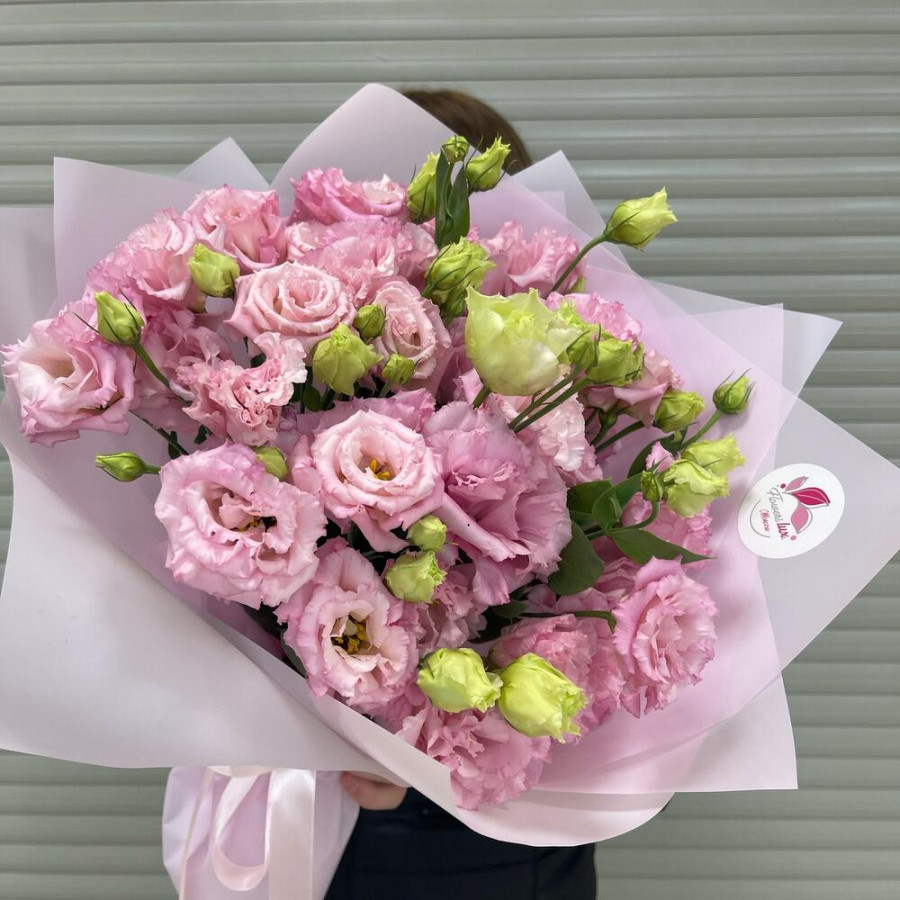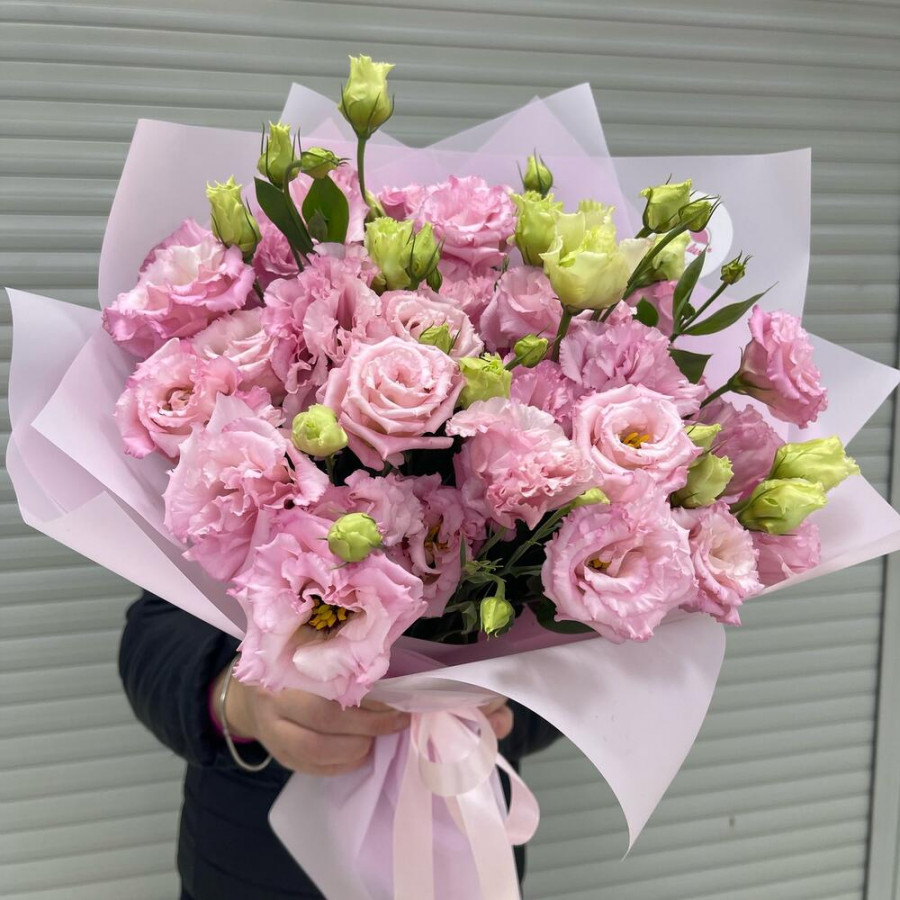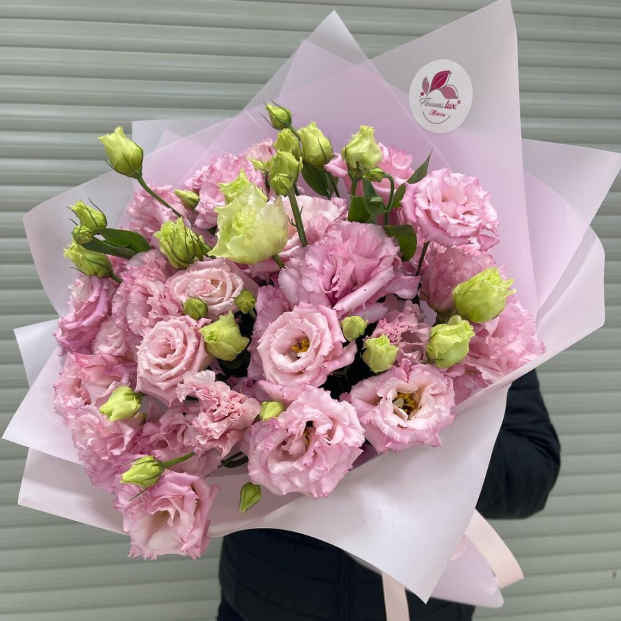 На фото букет 11 розовых эустом. В составе: эустома (лизиантус) 11 шт, дизайнерская упаковка 3 шт, атласная лента 1 шт, . Все цветы свежие и ароматные, букет красиво оформлен и отлично подходит для подарка. Доступна доставка цветов или самовывоз.