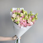 Букет из белой эустомы и розовых гвоздик