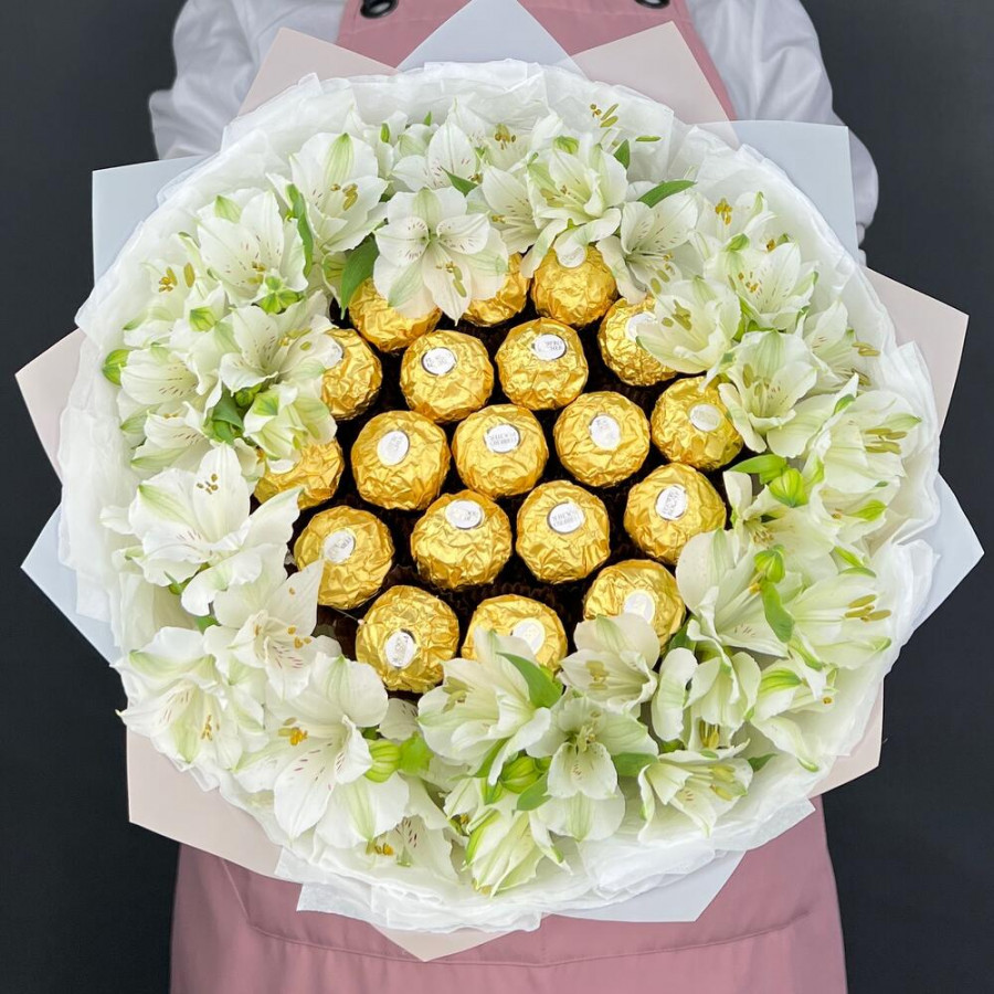Букет из конфет Ferrero Rocher и и альстромерии