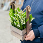 На фото ландыши в деревянном ящике. В составе: ландыш 15 шт, оазис флористический 1 шт, деревянный ящик (s) 1 шт, . Все цветы свежие и ароматные, букет красиво оформлен и отлично подходит для подарка. Доступна доставка цветов или самовывоз.